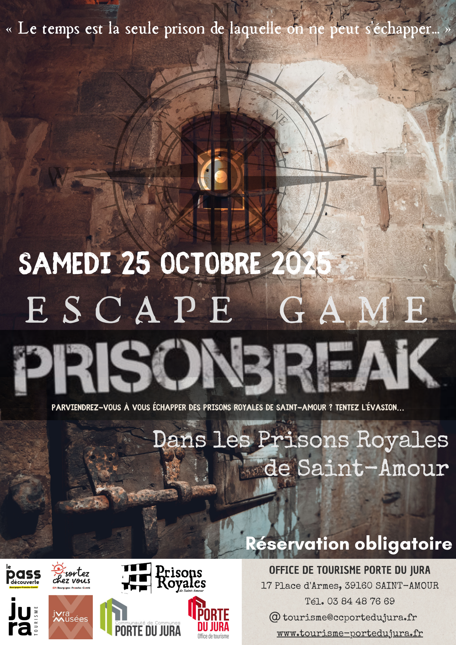 Réservation obligatoires auprès de l’Office de Tourisme Porte du Jura au 03 84 48 76 69 à partir du mardi 14 octobre 2025