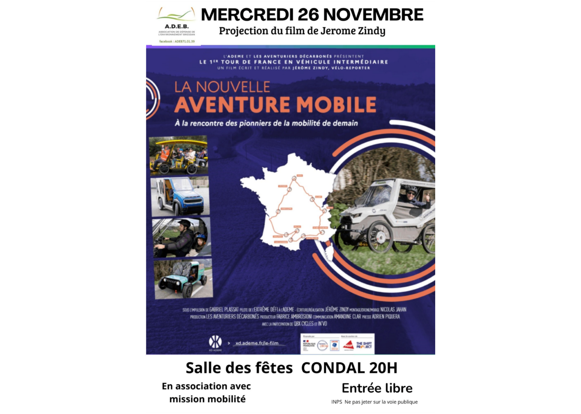 L’ADEB vous propose une projection du film la nouvelle aventure mobile de Jérôme Zindy.