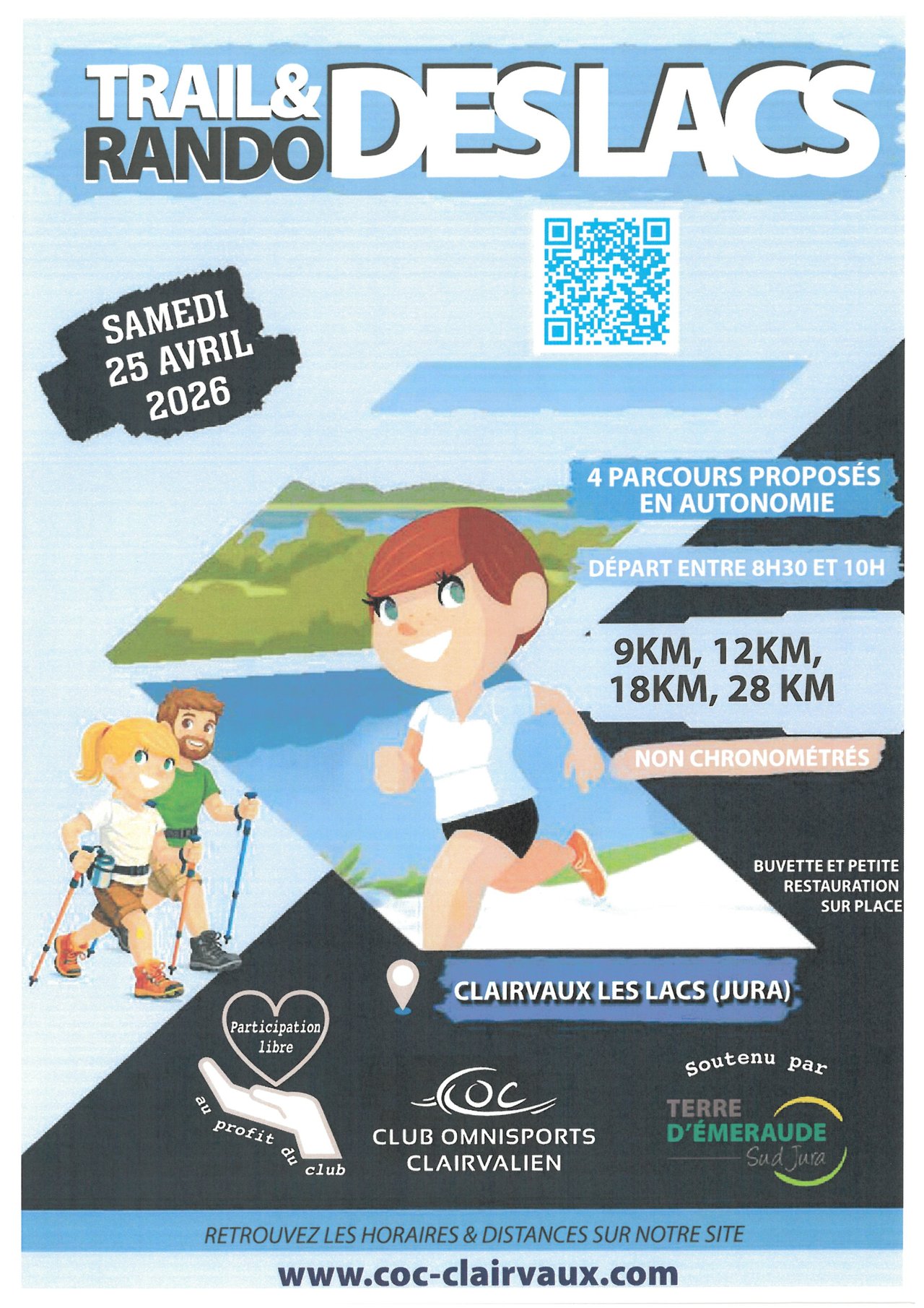 Rando des lacs le 25 avril, départ libre en 8h30 et 10h00 à la salle des fêtes de Clairvaux-les-Lacs.