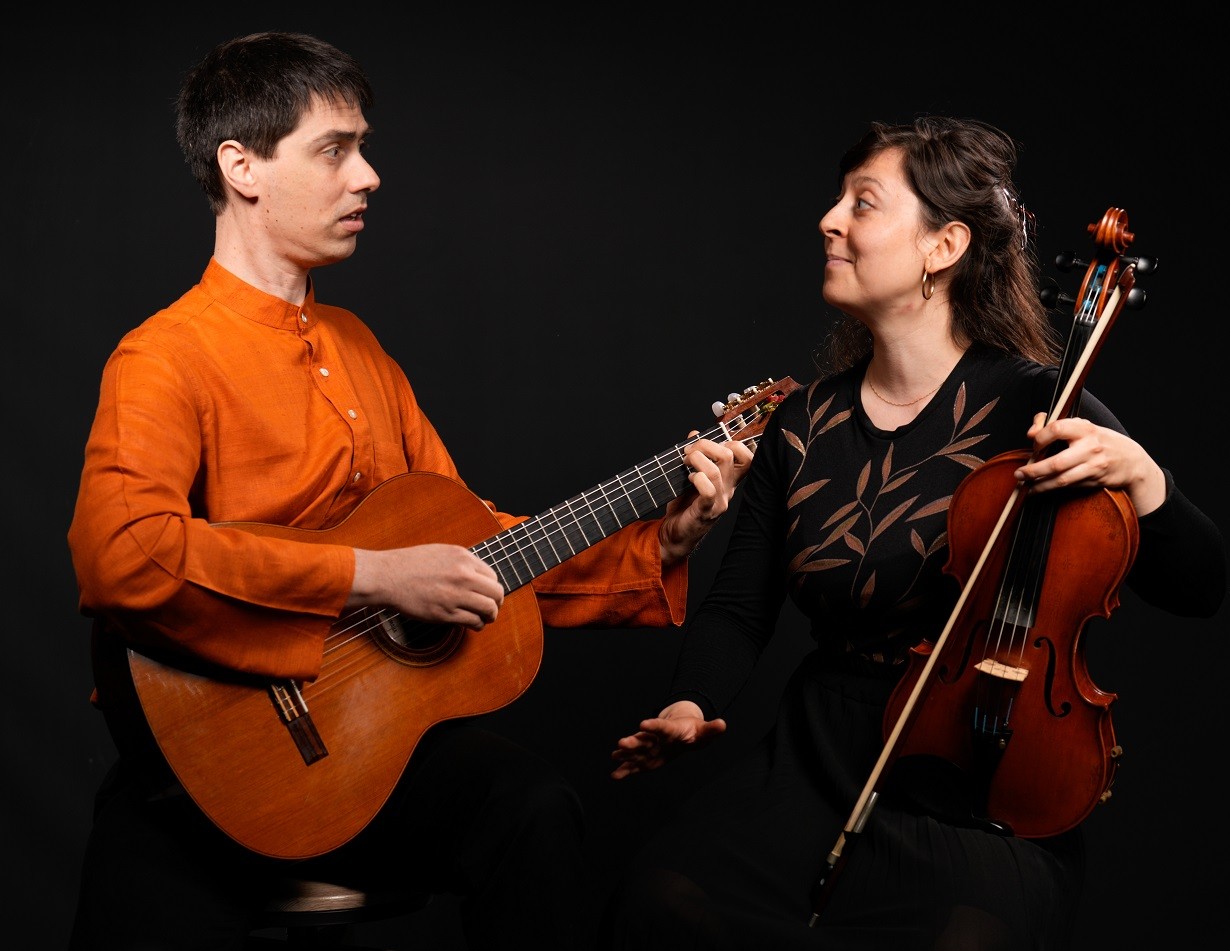 On y trouve un alto, une guitare, une chanteuse, un chanteur, une mandoline, un tampura, une danseuse : un duo. Deux artistes sensibles et sincères qui emmènent leur public dans un voyage au travers d'esthétiques contrastées, de la chanson française poétique à la musique classique indienne, en passant par des traditionnels argentins, du flamenco, de la polyphonie médiévale et de la musique minimaliste. Leur itinéraire est aussi émotionnel, une traversée qui donne une place aux ressentis profonds comme à la joie partagée. Pour le plaisir de faire vivre des répertoires méconnus, avec humour, et le recul aérien d'une hirondelle.