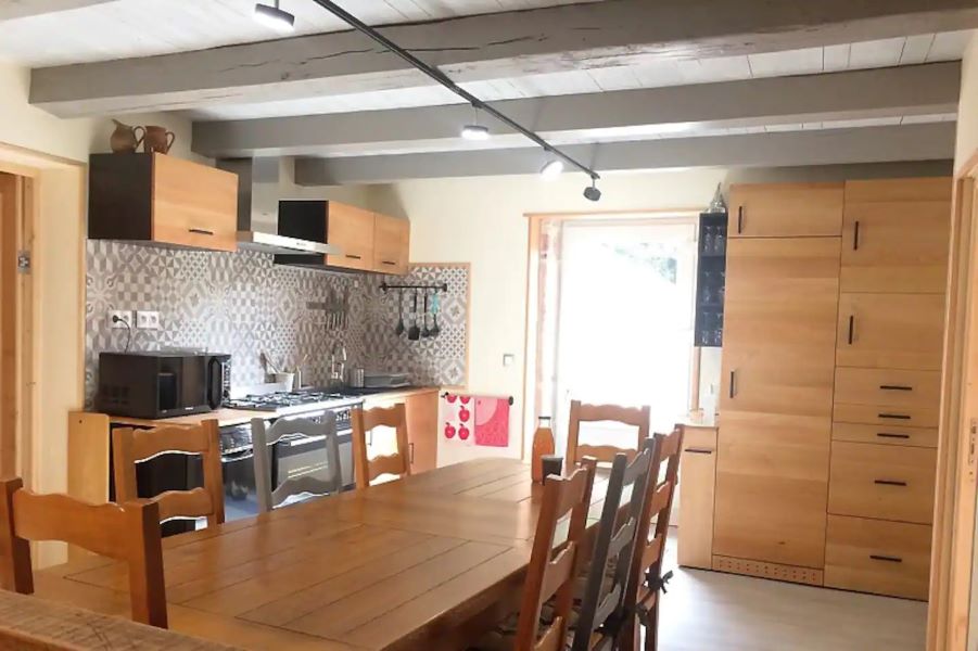 Cette maison mitoyenne en pierres du 18ème entièrement restaurée se compose d'une pièce de vie avec cuisine toute équipée, d'un salon propice à la détente et à la lecture.